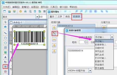 可以先打开这个软件,先绘制一个条形码,然后添加内容,制作一个的话,就用手动输入,如果是想批量生成,也支持用数据库导入来实现批量生成的(数据库可以是excel、TXT等使用率比较高的文件格式)