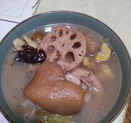 把猪爪和蕨麻放入锅内,加足量清水,姜片,料酒大火烧开撇去浮沫后转小火焖1个小时。