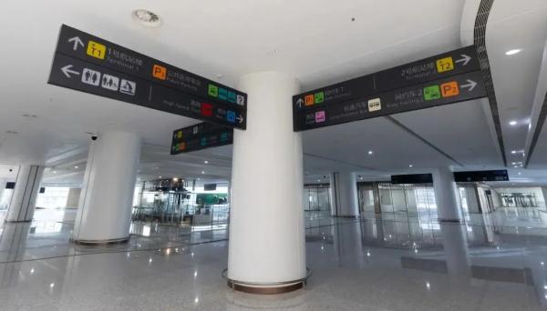 来到成都天府国际机场交通中心(英文简称“GTC”),在换乘大厅内,指引各种交通方式的标识标牌已设置好。天府机场公共区管理中心运控人员介绍说,GTC位于天府国际机场1号、2号航站楼之间,分为南区、北区和停车楼,总建筑面积27万平方米。
