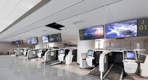 成都地铁18号线天府国际机场1号、2号航站楼站设在北区换乘大厅一楼。在这里,自助售票机已摆放整齐,自助行李托运系统也已安装到位。这就意味着,候机乘客一出地铁站,就可以自助托运行李,候机登机便可轻装上阵。