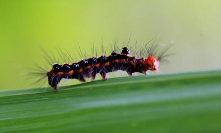 毛虫是鳞翅目昆虫的幼虫,其身上有带毒的绒毛,通常人体接触到这些绒毛后会有极强的过敏反应。其攻击性不强,但是因为不易觉察到它的存在,经常误碰到毛虫。小时间没少因为毛虫搞的身上全是疙瘩。