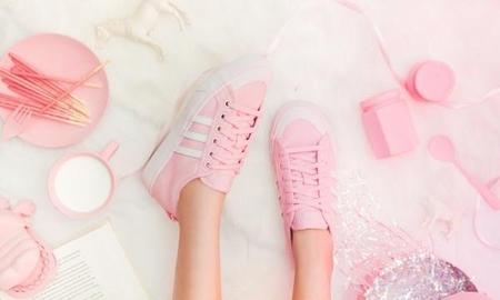对女生来说,粉红色球鞋比白色球鞋还更能让心柔软,淡淡的樱花色搭配起来很轻易就让心都融化了。