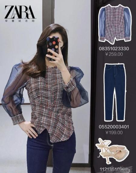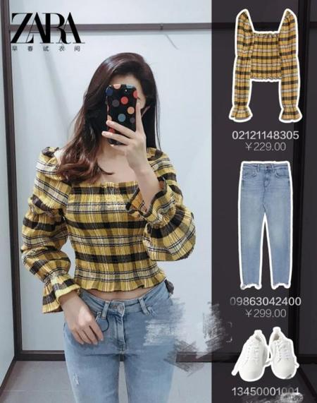 第一眼看到小姐姐穿zara这件上衣得时候我真的被惊艳了,太好看了吧,下面简单搭配牛仔裤,出街超吸睛。