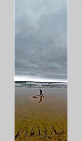 1-5,摄影远景的景别特点。拍摄距离较远,拍摄画面涵盖了被摄主体与所处在的大场面环境。通过对大环境场景物的表现,烘托突出被摄主体,营造氛围,抒发创作情感与意图。如下图《在海边》
