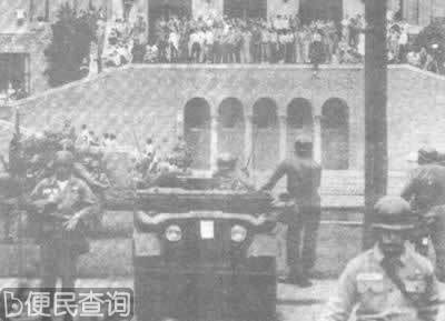 9名黑人学生在严密保护下拿课本走进学校,白人学生怒目而视