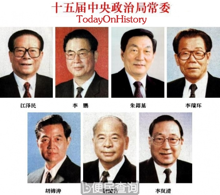 1997年9月19日,中国共产党第十五届中央委员会第一次全体会议在北京举行。出席会议的有中央委员191人,候补中央委员151人。江泽民同志主持会议并作了重要讲话。中共十五届一中全会结束后,新当选的中央政治局常委江泽民、李鹏、朱镕基、李瑞环、胡锦涛、尉健行、李岚清来到人民大会堂,会见访十五大的中外记者。