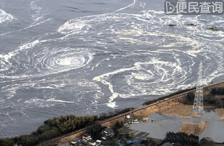 日本茨城县,日本地震引发海啸,海面出现大漩涡