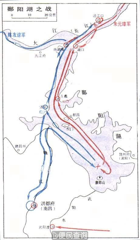 鄱阳湖之战(1363年8月30日─1363年10月4日)是中国元朝末年的一场重要战役,朱元璋在此役击败并杀死强敌陈友谅,也被视为中世纪世界规模最大水战。