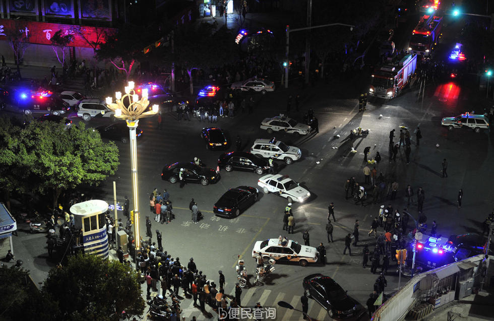 昆明火车站外封锁现场