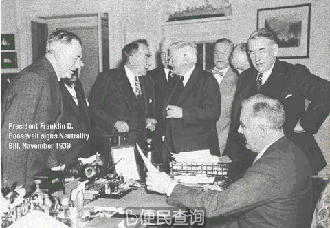 1935年,德国公开违反《凡尔赛和约》关于限制德国武装的军事条款,宣布实行普遍义务兵役制,积极扩军备战。同时,意大利在非洲发动对埃塞俄比亚的侵略。英、法为保持自己的既得利益,对德、意侵略采取不干涉政策,美国也实行中立政策。1935年8月31日,美国参众两院联席会议通过了《中立法》。法案规定:在两个或两个以上外国之间,发生战争或战争在进行之中,总统应宣布此项事实,然后,凡以军械、军火或战备,自美国之任何地方或其属地之任何地方输出而运至该交战国,或运至任何交战国所利用之任何中立国港口者,均为违法。中立法的通过,从法律上把美国基本的欧洲政策固定下来,对当时欧洲的绥靖主义起了推波助澜的作用。
