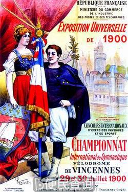 1900年巴黎奥运会体操比赛海报,右上方可见“1900国际博览会”字样,没有只字提到奥运会